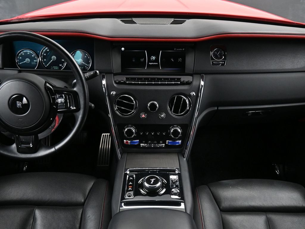 Features: 16 Speakers, 4-Wheel Disc Brakes, ABS brakes, Adaptive suspension, Air Conditioning, Alloy wheels, AM/FM radio: SiriusXM, Anti-whiplash front head restraints, Auto High-beam Headlights, Auto tilt-away steering wheel, Auto-dimming door mirrors, Auto-dimming Rear-View mirror, Auto-leveling suspension, Automatic temperature control, Axle Ratio: TBD, Bodyside moldings, Brake assist, Bumpers: body-color, CD player, Compass, Delay-off headlights, Door auto-latch, Driver door bin, Driver vanity mirror, Dual front impact airbags, Dual front side impact airbags, DVD-Audio, Electronic Stability Control, Emergency communication system: Rolls-Royce Assist, Exterior Parking Camera Rear, Four wheel independent suspension, Front anti-roll bar, Front Bucket Seats, Front Center Armrest w/Storage, Front dual zone A/C, Front fog lights, Front reading lights, Full-Leather Seating Surface, Garage door transmitter, Genuine wood console insert, Genuine wood door panel insert, Heads-Up Display, Heated & Electrically Adjustable Front Seats, Heated door mirrors, Heated front seats, Illuminated entry, Knee airbag, Leather steering wheel, Low tire pressure warning, Memory seat, Navigation System, Night vision lights, Occupant sensing airbag, Outside temperature display, Overhead airbag, Overhead console, Panic alarm, Passenger door bin, Passenger vanity mirror, Power adjustable rear head restraints, Power door mirrors, Power driver seat, Power moonroof, Power passenger seat, Power steering, Power windows, Radio data system, Radio: AM/FM/DAB w/CD/DVD & Navigation, Rain sensing wipers, Rear air conditioning, Rear anti-roll bar, Rear audio controls, Rear dual zone A/C, Rear reading lights, Rear seat center armrest, Rear window defroster, Remote keyless entry, Security system, Speed control, Speed-sensing steering, Split folding rear seat, Spoiler, Steering wheel memory, Steering wheel mounted audio controls, Telescoping steering wheel, Tilt steering wheel, Traction control, Trip computer, Turn signal indicator mirrors, Variably intermittent wipers, Weather band radio, and Wheels: 22" 7 Spoke Part Polished Shadow.